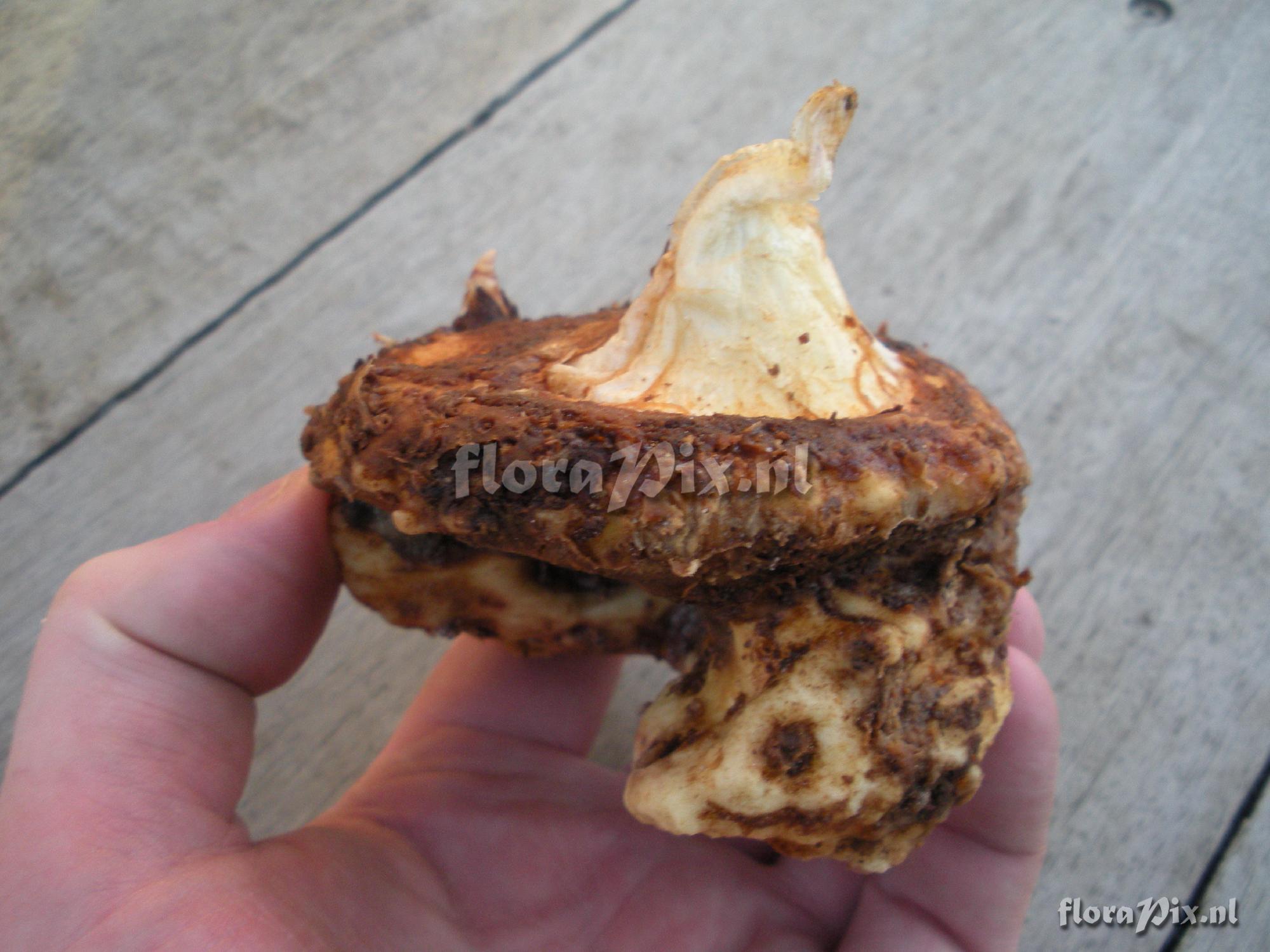 : Tuber: rotted away or just sloughed the old part? 1/3 missing.