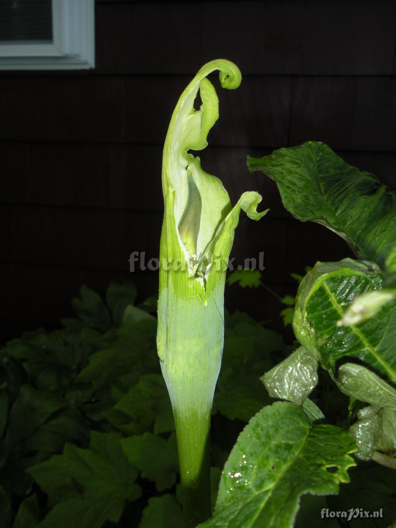 960 - Arisaema (Garden) - 2008-06-25(Dimension: 1530 x 2050 pixels - Counter: 6266) Arisaema tortuosum (developmental issues) ![]() Photographer: Erick Adams Note: No spathe limb. A small amount of tissue was removed from the side (less than 2cm square) so the largest of the three spadix appendages can be seen,
