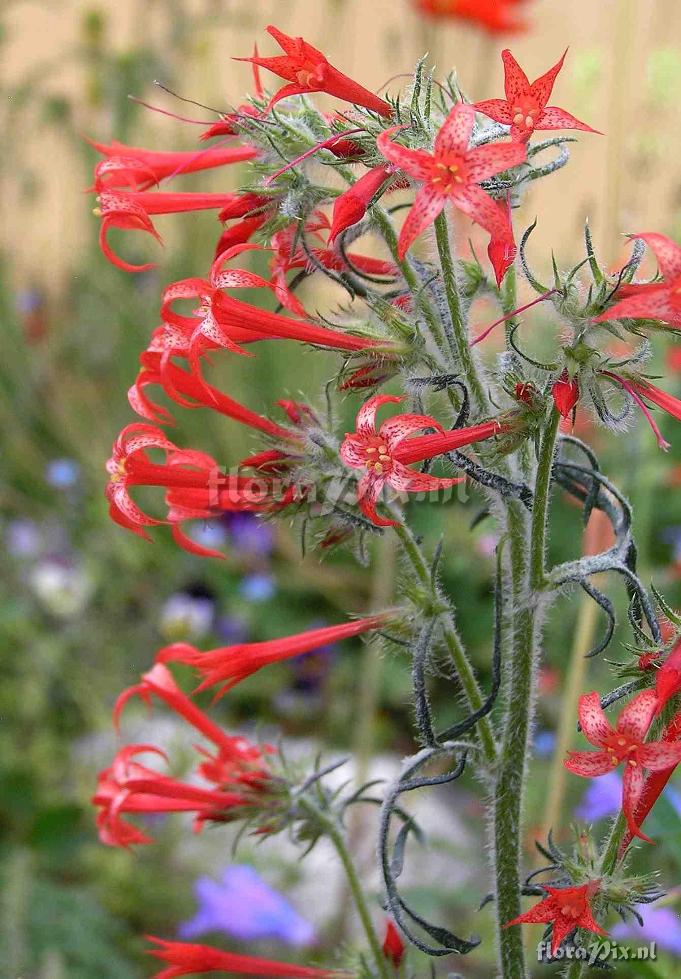 2712 - AlpenPix (Garden) - 2010-11-29(Dimension: 1371 x 1979 pixels - Counter: 5637) Ipomopsis aggregata ![]() Locality: USA - Colorado - Mountain View Experimental Gardens, Peak 7 area, Breckenridge, Colorado, elevation 10,000 feet, USDA Zone 4. Photographer: Jane Hendrix Note: Scarlet Gilia looks like a nasty weed during its first season of growth. In fact, before I learned to recognize its foliage, I pulled them all out and then wondered why they had "disappeared"! There are other color forms, including salmon pink and pure white, but everyone who visits my garden loves the red ones best. So do the hummingbirds. This is a biennial species and will reliably self-sow in my garden -- although not always where I want it. It is a taprooted species but still can be transplanted successfully in its first year to a more desirably place. It will tolerate extremely poor conditions of bright sun, drought and compacted soil and will still bloom beautifully in mid-July. (Sent: Alpine-l@nic.surfnet.nl)
