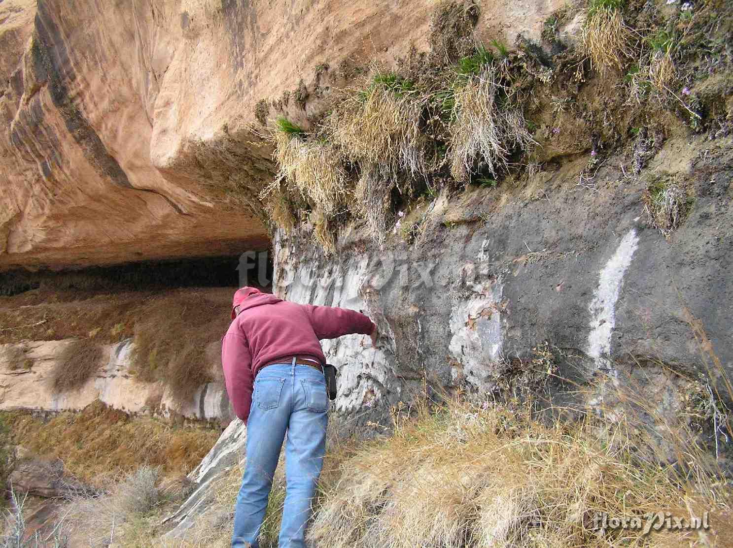 3073 - AlpenPix (Wild) - 2011-04-13(Dimension: 1517 x 1163 pixels - Counter: 7583) Primula specuicola habitat ![]() Locality: USA - Utah & Colorado - Canyonlands area of southeastern Utah Photographer: Jane Hendrix Note: Primula specuicola (Cave Primrose) has a special habitat in the hanging gardens that have established themselves in moist fractures in red sandstone. Just above Klaus's right hand is one of these lovely plants in full bloom. (Sent: Alpine-l@science.uu.nl) Identification: pending
