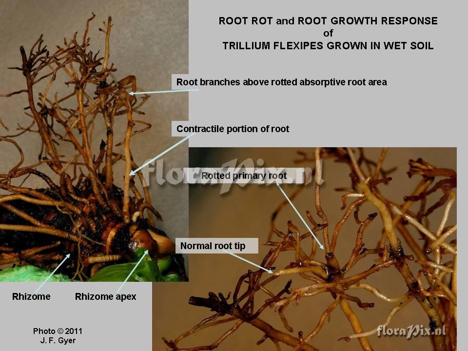 3024 - Woodland (Garden) - 2011-04-01(Dimension: 990 x 770 pixels - Counter: 7279) Trillium flexipes ![]() Locality: USA/ New Jersey - Fern Hill Farm, Clarksboro New Jersey USA Photographer: John Gyer Note: Root rot in Trillium flexipes grown in a wet area (Sent: Trillium-l@science.uu.nl)