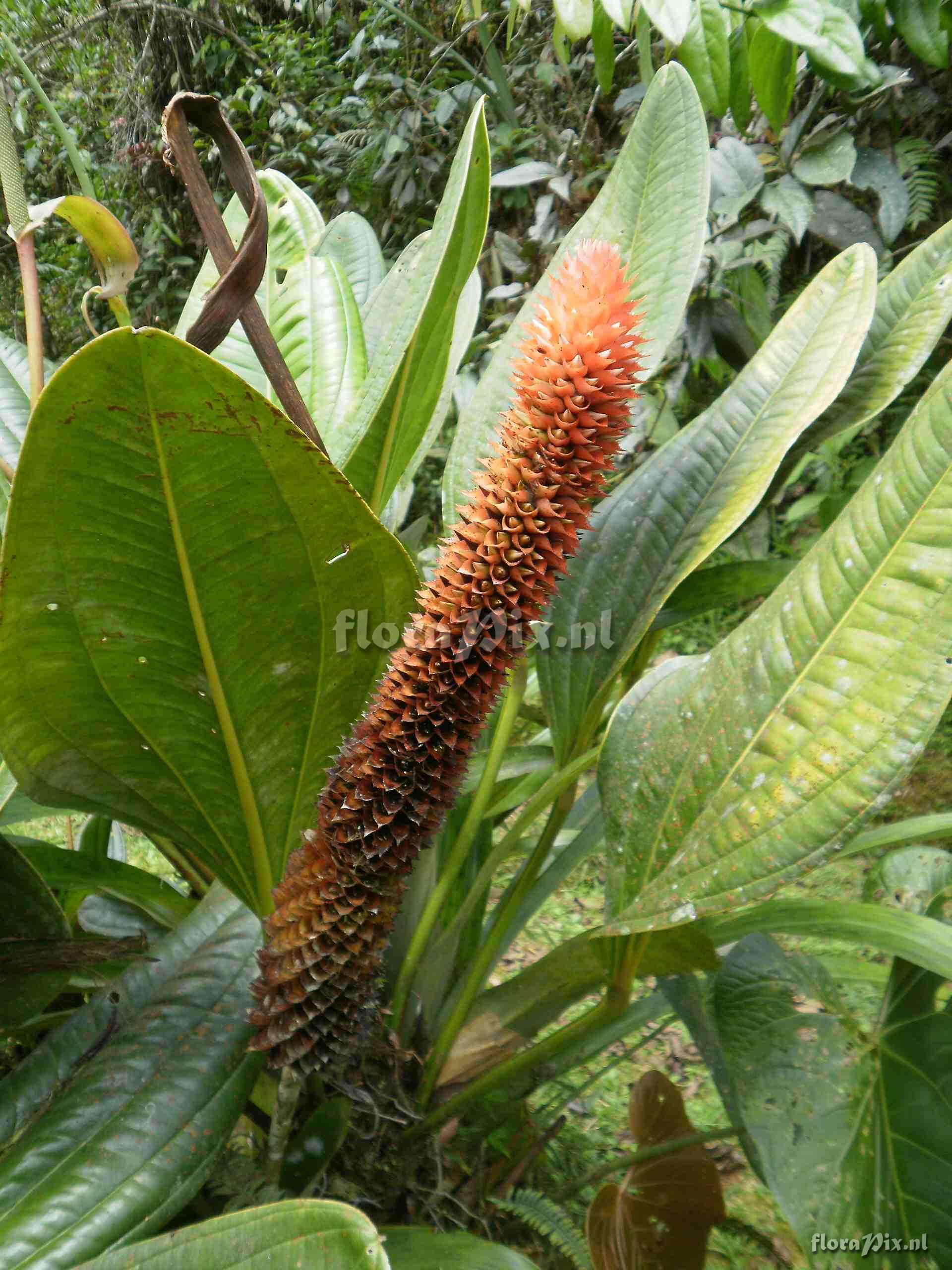 (Geladen als: Aechmea sp ?.) Verzamel locatie: Colombia - Valle de Cauca - In Eduardo Calderon's garden Fotograaf: Bruce Dunstan Opmerking: Much thinner and smaller structure to A. veitchii I have seen in Fortuna in Panama (Verzonden: brom-l@science.uu.nl) Determinatie: Opgelost