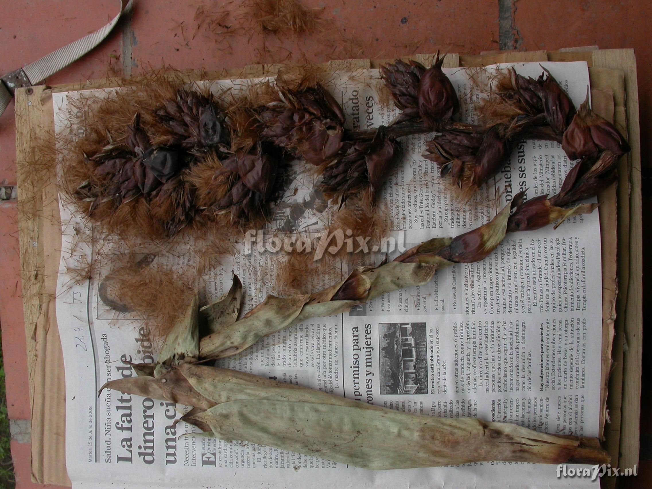 Verzamel locatie: Ecuador - Prov. of Zamora-Chinchipe, area of Estación Cientifica San Francisco (S 03°58“, W 79°04“ ), road Loja-Zamora, ca. 35 km from Loja; moist montane forest Fotograaf: Florian Werner Opmerking: Col.: Werner, F.A. 3058 (20-04-2010) inf. erect, large, with globose bracts subduing every parial infl. Leaves with very broaf base, tapering off ver gradually (but tip rounded).