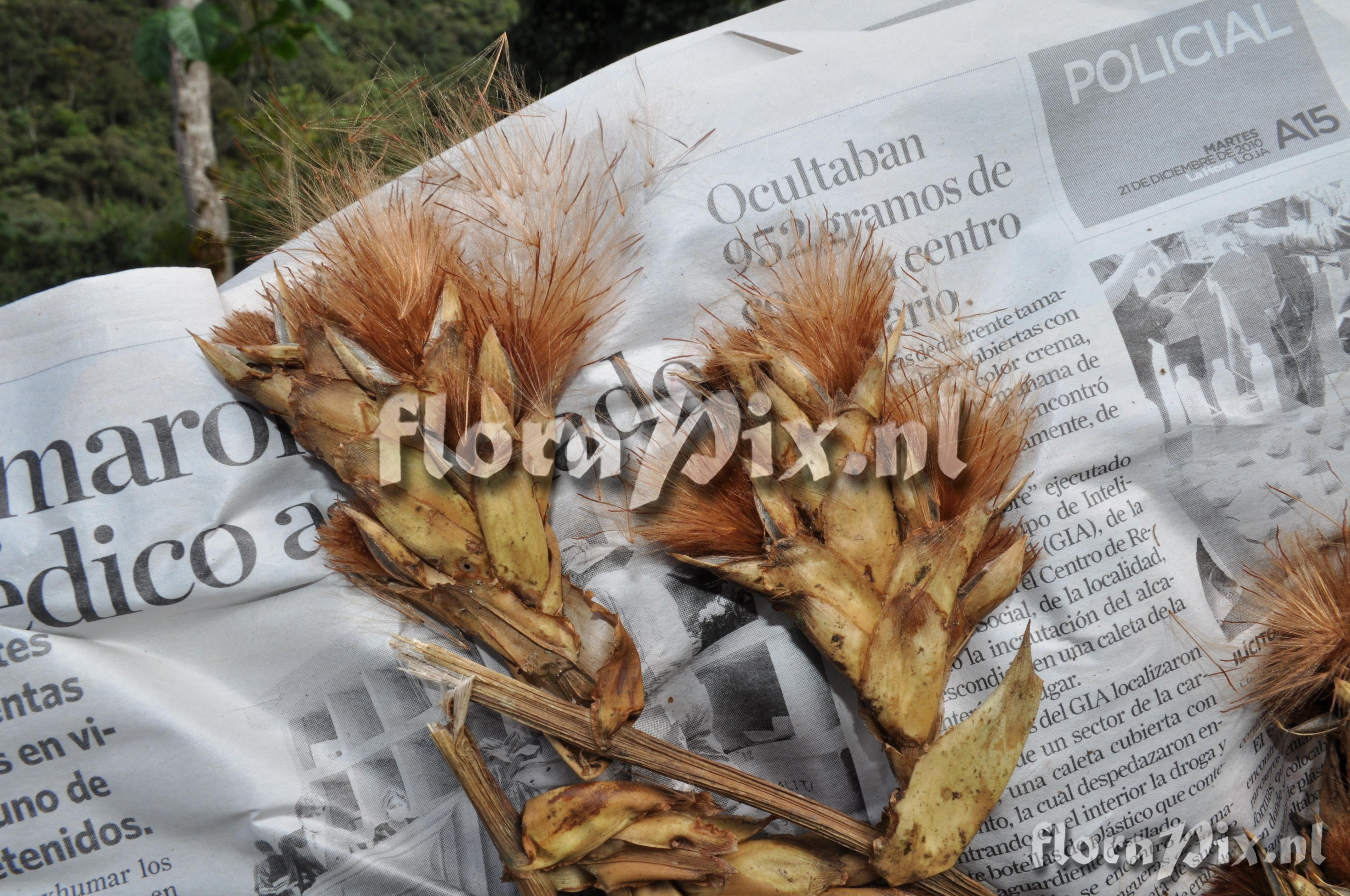 (Geladen als: Guzmania ) Verzamel locatie: Ecuador - Prov. Zamora-Chinchipe; close to Zamora; entrance of Podocarpus NP ""Bombuscaro"", tall premontane moist forest Fotograaf: Florian Werner Opmerking: Col.: Werner, F.A. 3118 (08-04-2011) infl. ca. 1.5 m long, straight, erect or inclided due to weight, with flowers along terminal 1/2-2/3. Largest (widest) local tank bromeliad. Aff. G. killipiana. Determinatie: Opgelost