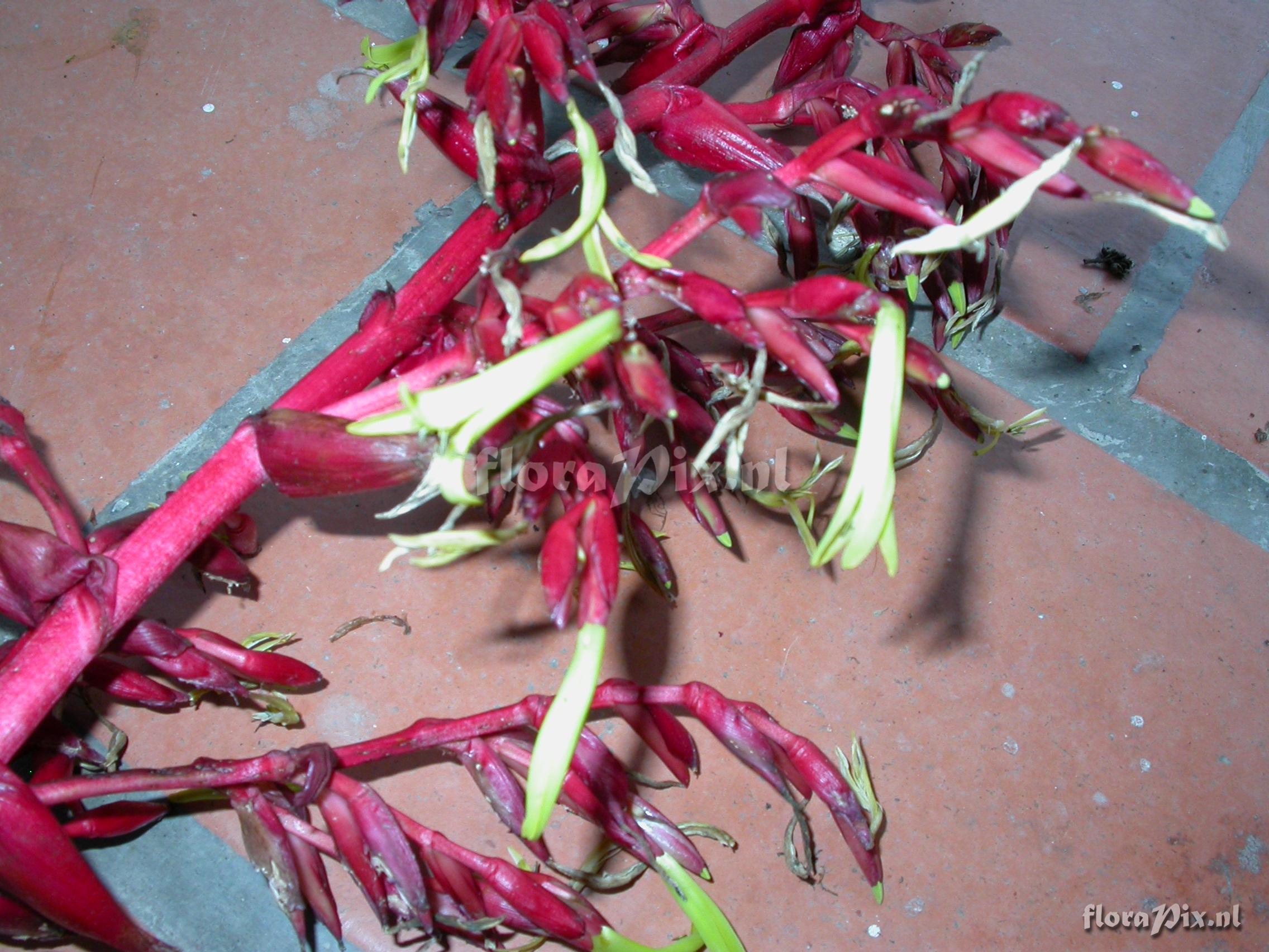 Verzamel locatie: Ecuador - Prov. of Zamora-Chinchipe, area of Estación Cientifica San Francisco (S 03°58“, W 79°04“ ), road Loja-Zamora, ca. 35 km from Loja; moist montane forest Fotograaf: Florian Werner Opmerking: Col.: Werner, F.A. 2125 (05-11-2006) - Det.: W. Till (U Vienna) 2011 "infl. 1-1.5m long; peduncle, pedicel, bracts and calyx bright red, corolla large and yellow. Recollected as fw3124"