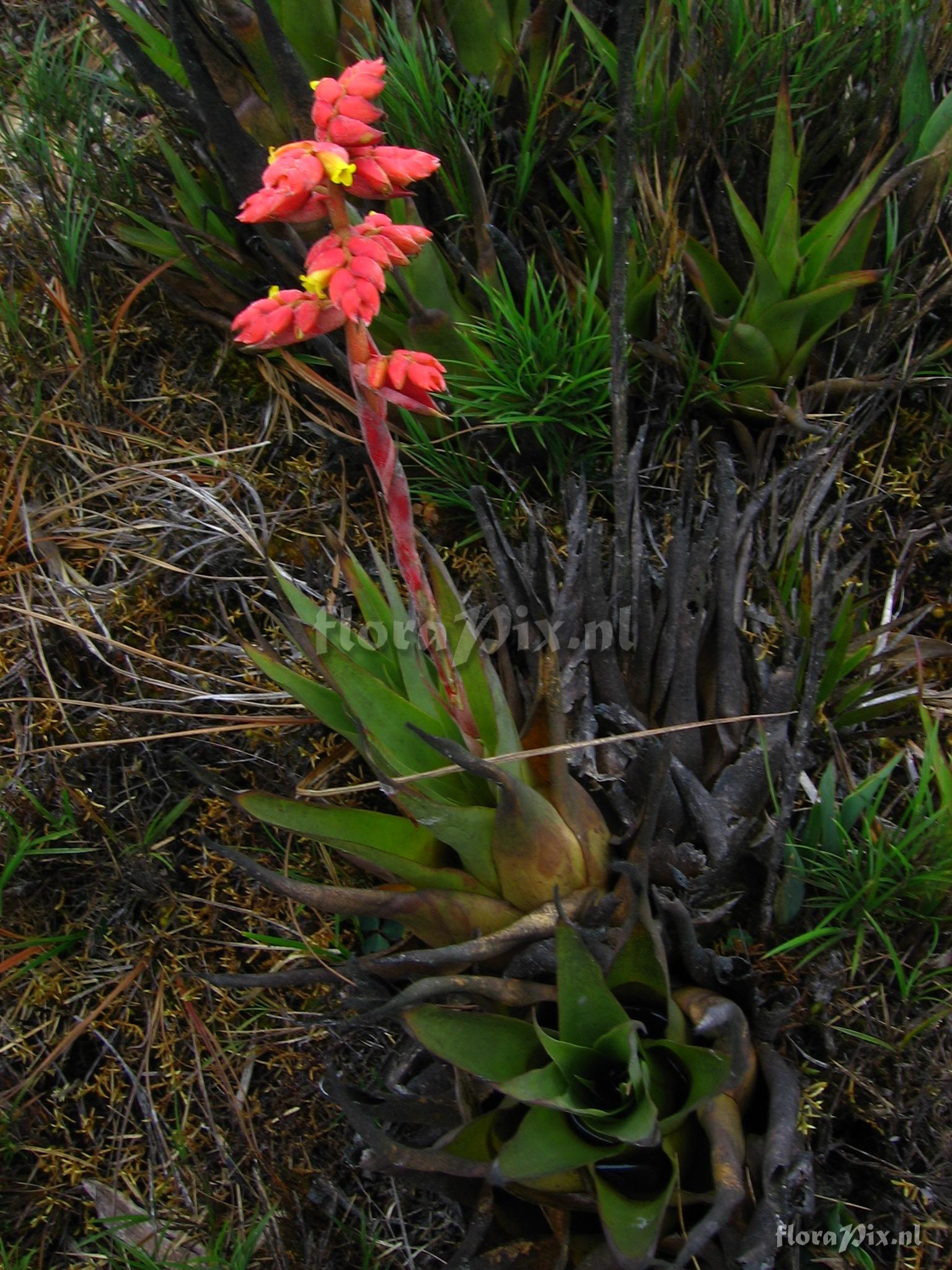 Verzamel locatie: Ecuador - Prov. of Zamora-Chinchipe, area of Estación Cientifica San Francisco (S 03°58“, W 79°04“ ), road Loja-Zamora, ca. 35 km from Loja; moist montane forest Fotograaf: Florian Werner Opmerking: Col.: Werner, F.A. 2374 (27-10-2007) - Det.: H. Luther (SEL) 2008 peduncle, pedicels y bracts brick-red. Only 1 specimen.