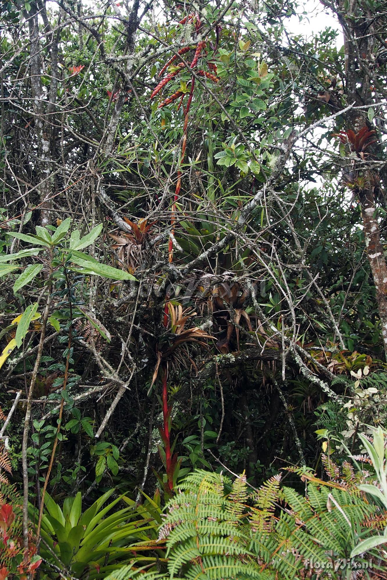 Verzamel locatie: Ecuador, Azuay Province - The first two pictures are NOT from Azuay Province, but was seen on our June 2015 trip. I do not have a locale for this. The remainder of the pictures are from Azuay Province on a side road west from Portete at an elevation of 3067 meters. The first plant is definitely Tillandsia clavigera (Jose Manzanares, Eric and I were together when we saw it). The other plant is believed to be T. clavigera, but I would like confirmation. Fotograaf: Jerry Raack Determinatie: gevraagd