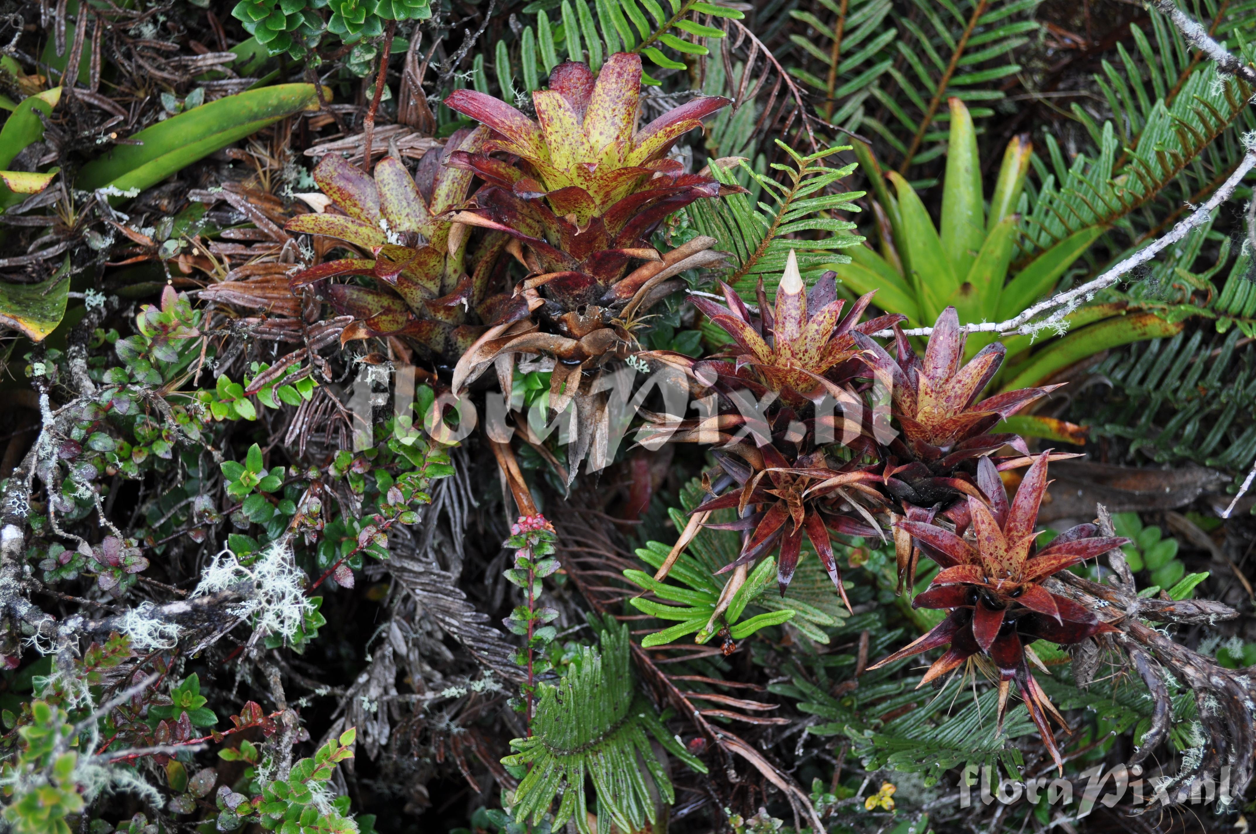 Verzamel locatie: Ecuador - Prov. of Zamora-Chinchipe, area of Estación Cientifica San Francisco (S 03°58´, W 79°04´ ), road Loja-Zamora, ca. 35 km from Loja; moist montane forest Fotograaf: Florian Werner Opmerking: Col.: Werner, F.A. 3125 (09-04-2011) "common; strictly terrestrial; high water storage capacity regarding shortness of (the many) leaves; leaf tips rolled up; infl. erect, red, ca. 1-1.3m tall (petals purple); Young plants routinely developing on old fruits eventually drop off and regularly just keep growing. Hatts off."