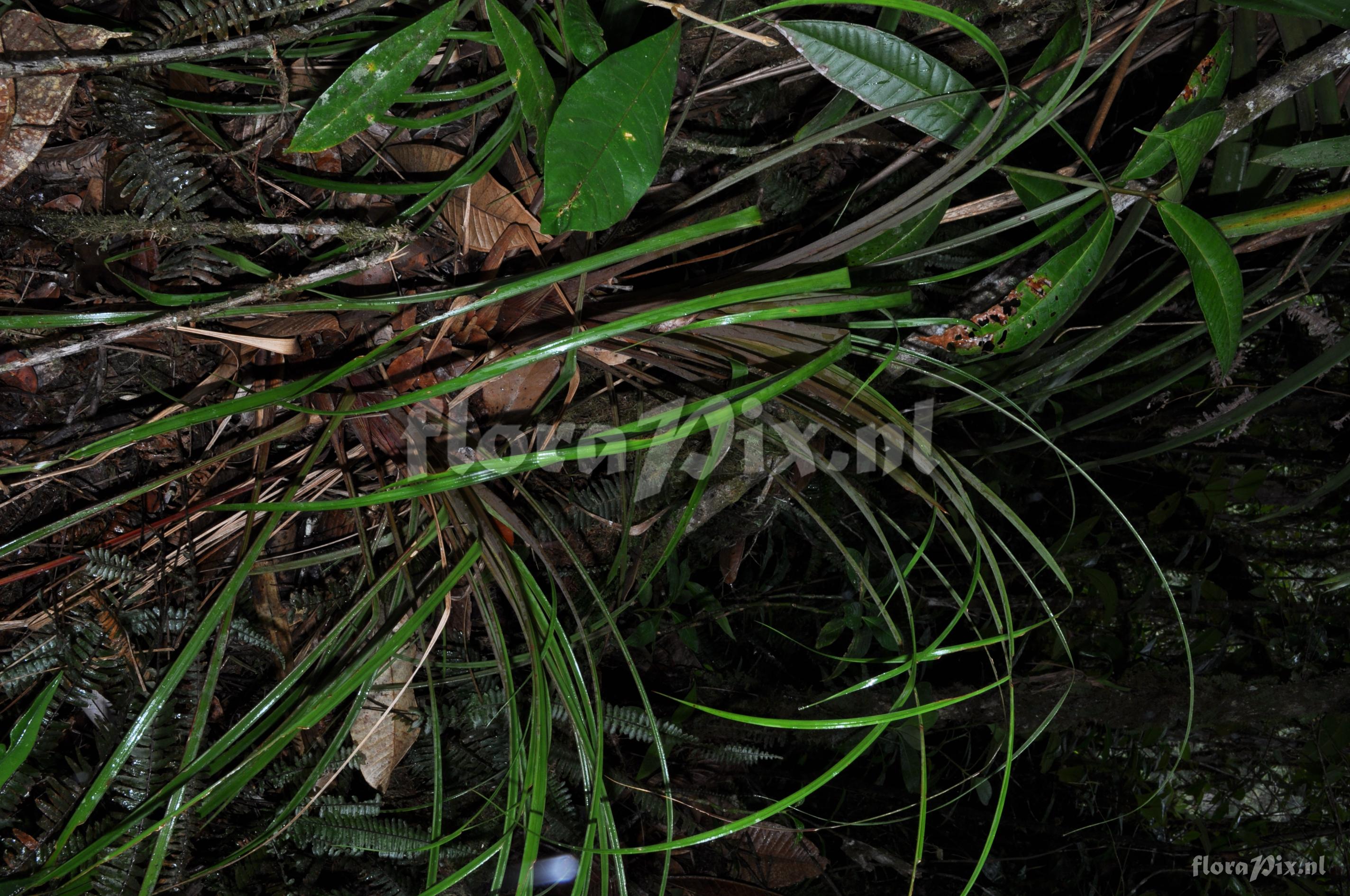 Locality: Ecuador - Prov. Zamora-Chinchipe; close to Zamora; entrance of Podocarpus NP ""Bombuscaro"", tall premontane moist forest Photographer: Florian Werner Note: Col.: Werner, F.A. 3119 (08-04-2011) long, very slim, pointy and trichomous leaves. flowers in one single cluster at end of 0.5 m long peduncle.