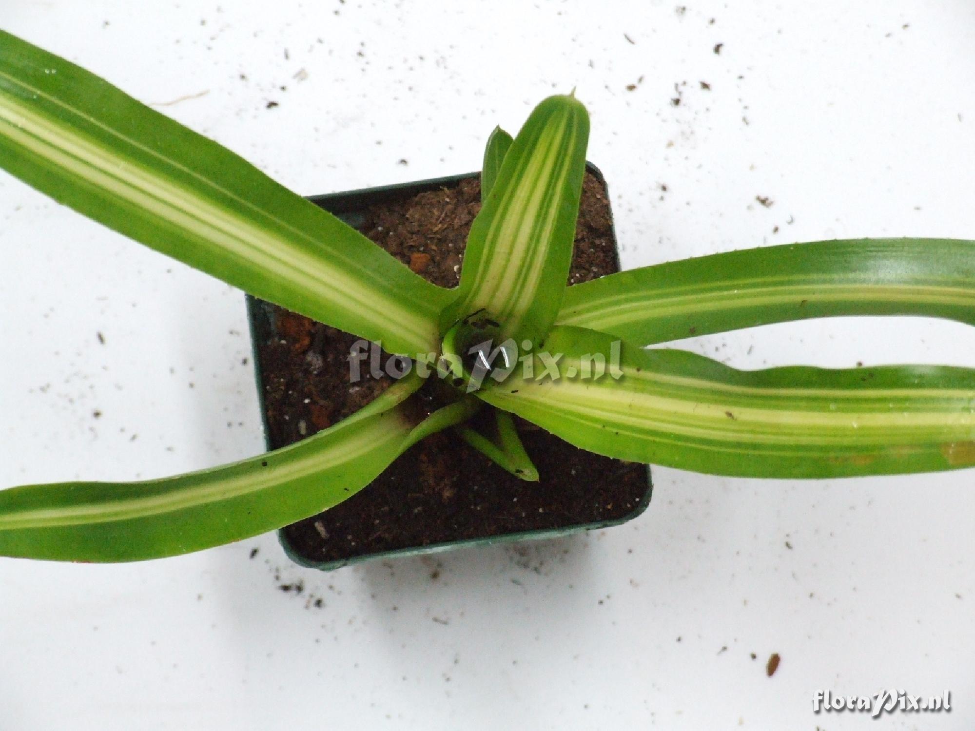 Photographer: Jim Hitchcock Note: common name "Bossa Nova" given by wholesaler. 12-16 cm pointed leaves with ribbons of varigation. HE: Neoregelia compacta 'Bossa Nova' is a Brazilian selection that was introduced into the USA in 1988. Identification: asked