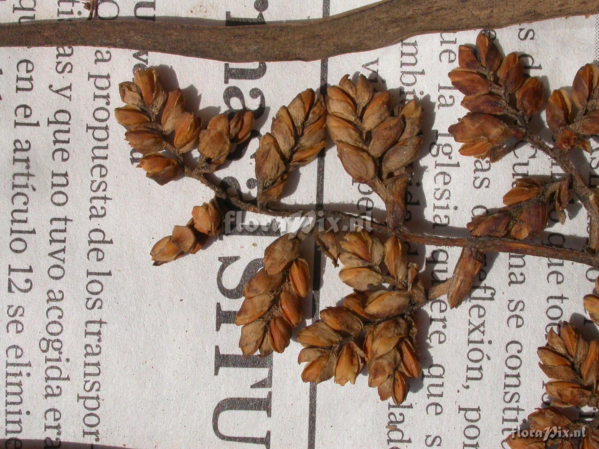 Locality: Ecuador - Zamora-Chinchipe Province; few km east of Pass (""El Tiro"") between Loja and Zamora; very open, windswept and stunted ridge forest. Photographer: Florian Werner Note: Col.: Werner, F.A. 2221 (27-04-2007) - Det.: W. Till (U Vienna) 2011 terminal 1/3 of leaves bent outward.