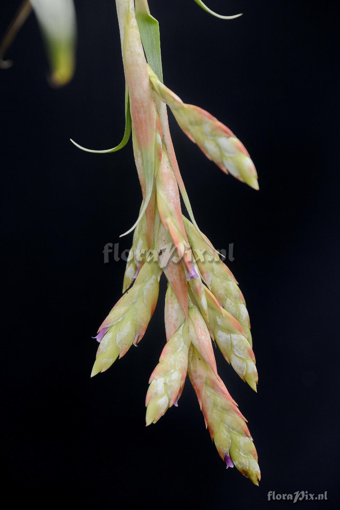 Identification (11558): Walter Till (2014-06-02) =Tillandsia cf. pomacochae - Looks very similar but leaves are different, peduncle is decurved, and corolla is open and differenty coloured