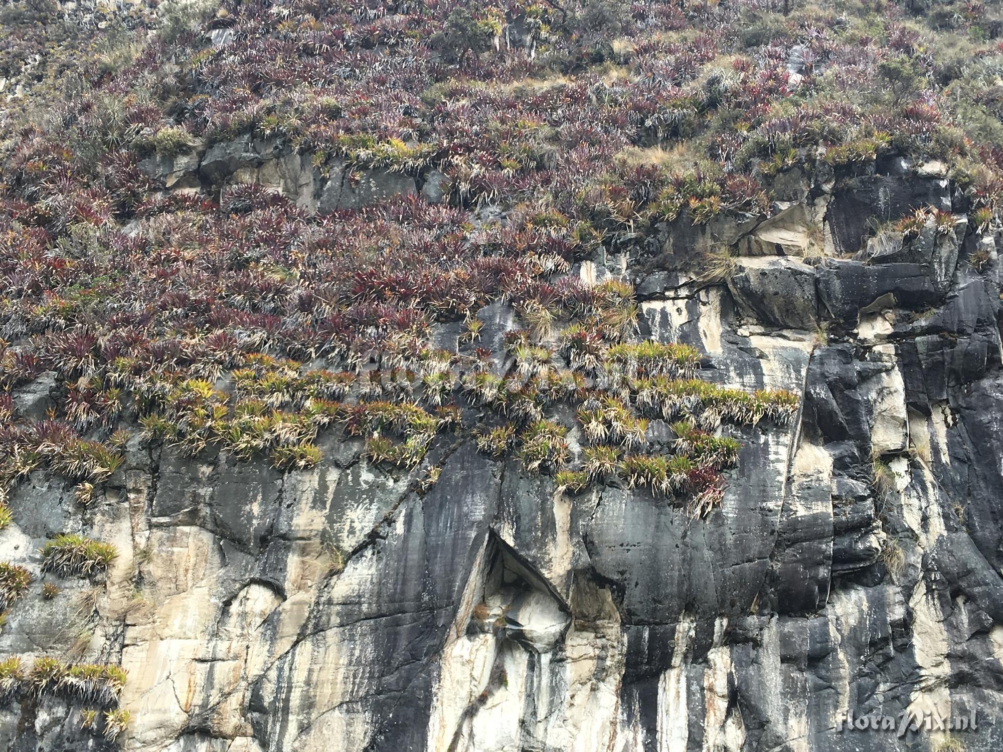 (Uploaded as: Tillandsia? ) Locality: Peru - Cordillera Blanca - Huascarán National Park, cliffs above Llanganuco Lakes Photographer: Scott Sandel Note: Huge numbers of these saxicolous bromeliads, presumably Tillandsias. Maybe two species? Lake elevation is 3850 meters, so cliffs rise up over 4000. (Sorry, no flowering plants seen during September.) (Sent: brom-l@science.uu.nl) Identification: solved