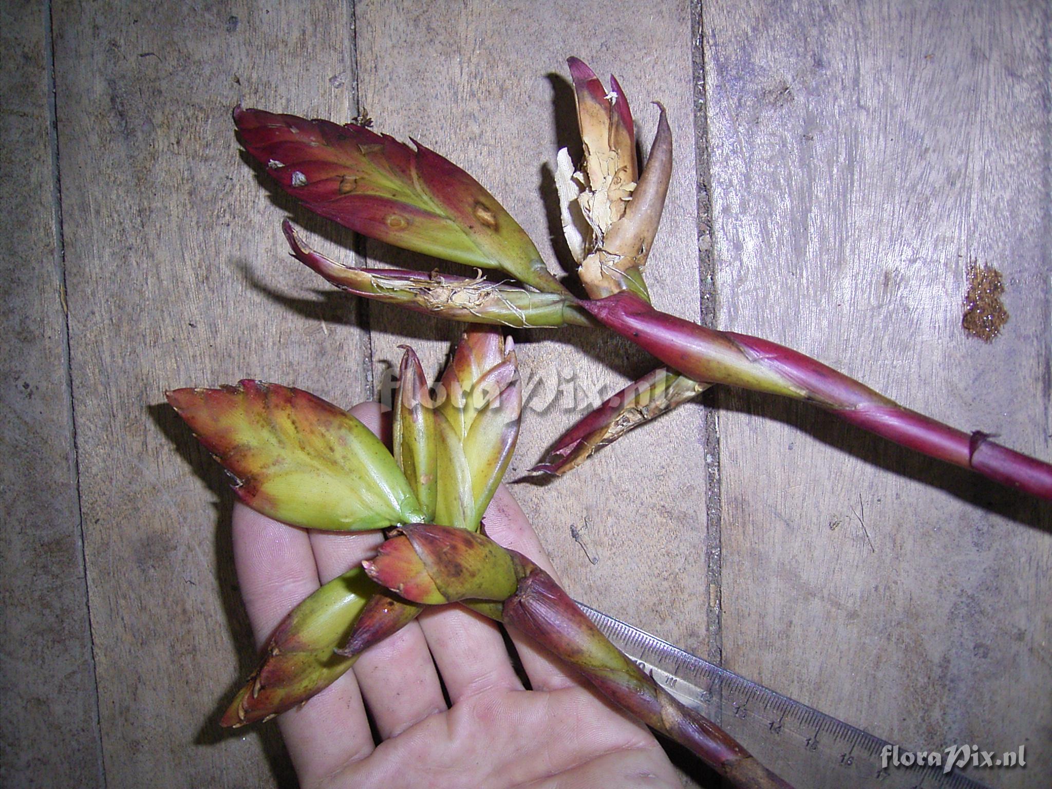 Locality: Ecuador - Prov. of Zamora-Chinchipe, area of Estación Cientifica San Francisco (S 03°58´, W 79°04´ ), road Loja-Zamora, ca. 35 km from Loja; moist montane forest Photographer: Florian Werner Note: Col.: Werner, F.A. 1790 (25-09-2005) bracts light yellow, flowers mild purple.