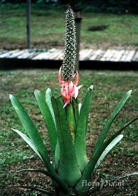 - Note (5411): Steven Heathcote (2010-01-22) - Peter, it seems A setigera has a pendulous inflorescence (illustrated in the Flora Neotropica and on the TROPICOS website) whereas A longicuspis infl is erect. Other differences listed in the FN are scape bracts (setigera = bright red, longicuspis = rose) and the plant size (setigera = 1 to 3m, longicuspis = 0.6m). Based on this I think the plant is more likely to be A longicuspis.