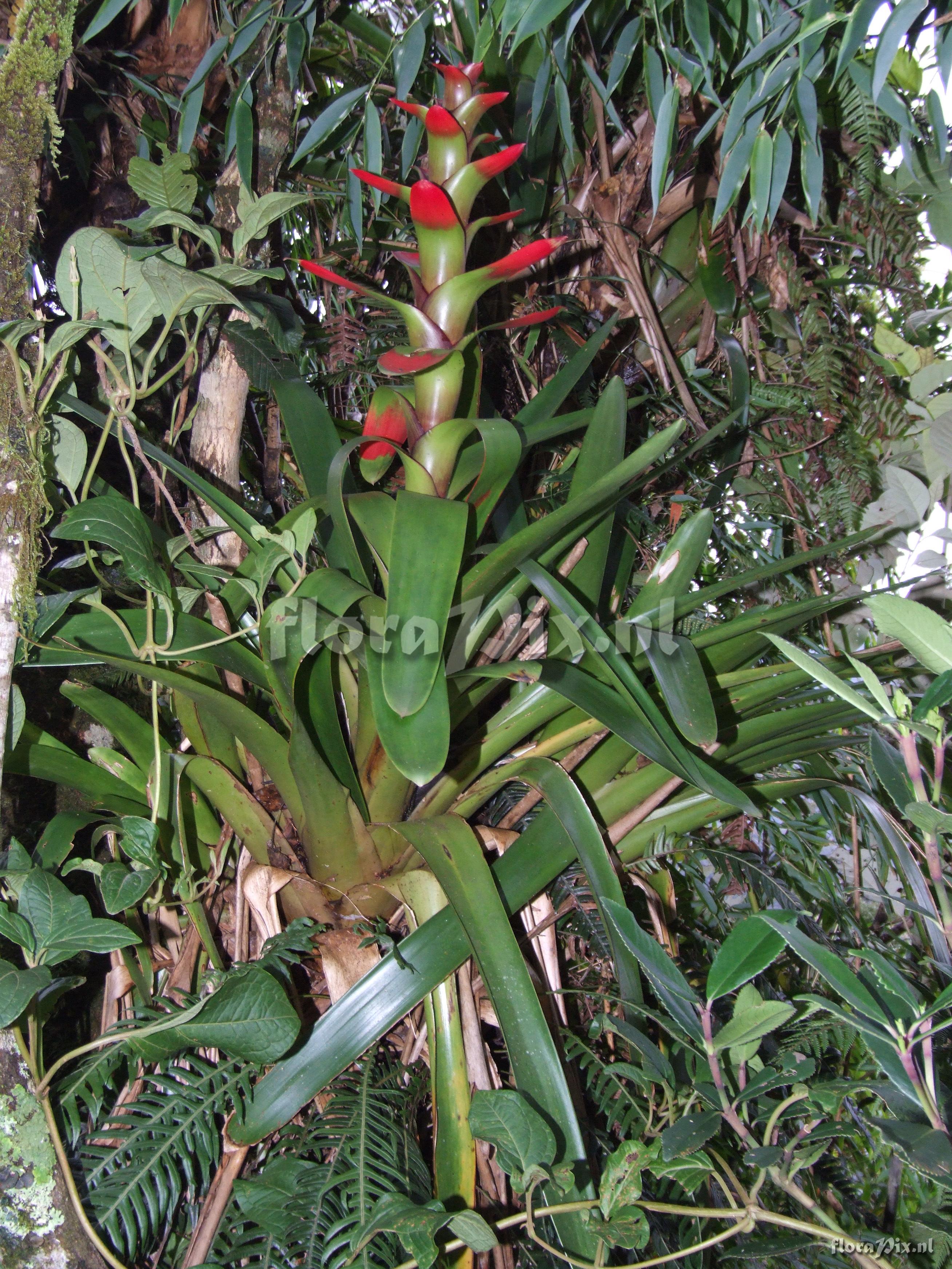 7779 - Bromeliads (Wild) - 2011-10-13(Dimension: 2646 x 3538 pixels - Counter: 8041) Guzmania gloriosa (André) André ex Mez ![]() Locality: Ecuador - Province of Loja, Parque Nacional Podocarpus, Cajanuma Photographer: Florian Werner Note: Col.: Werner, F.A. 2026 (08-06-2006) - Det.: W. Till (U Vienna) 2011 (lower canopy, understorey) or terrestrial. Bracts subduing flowers bright red, petals yellow. 30.3.08: seen at 2700m on old Loja-Zamora road.