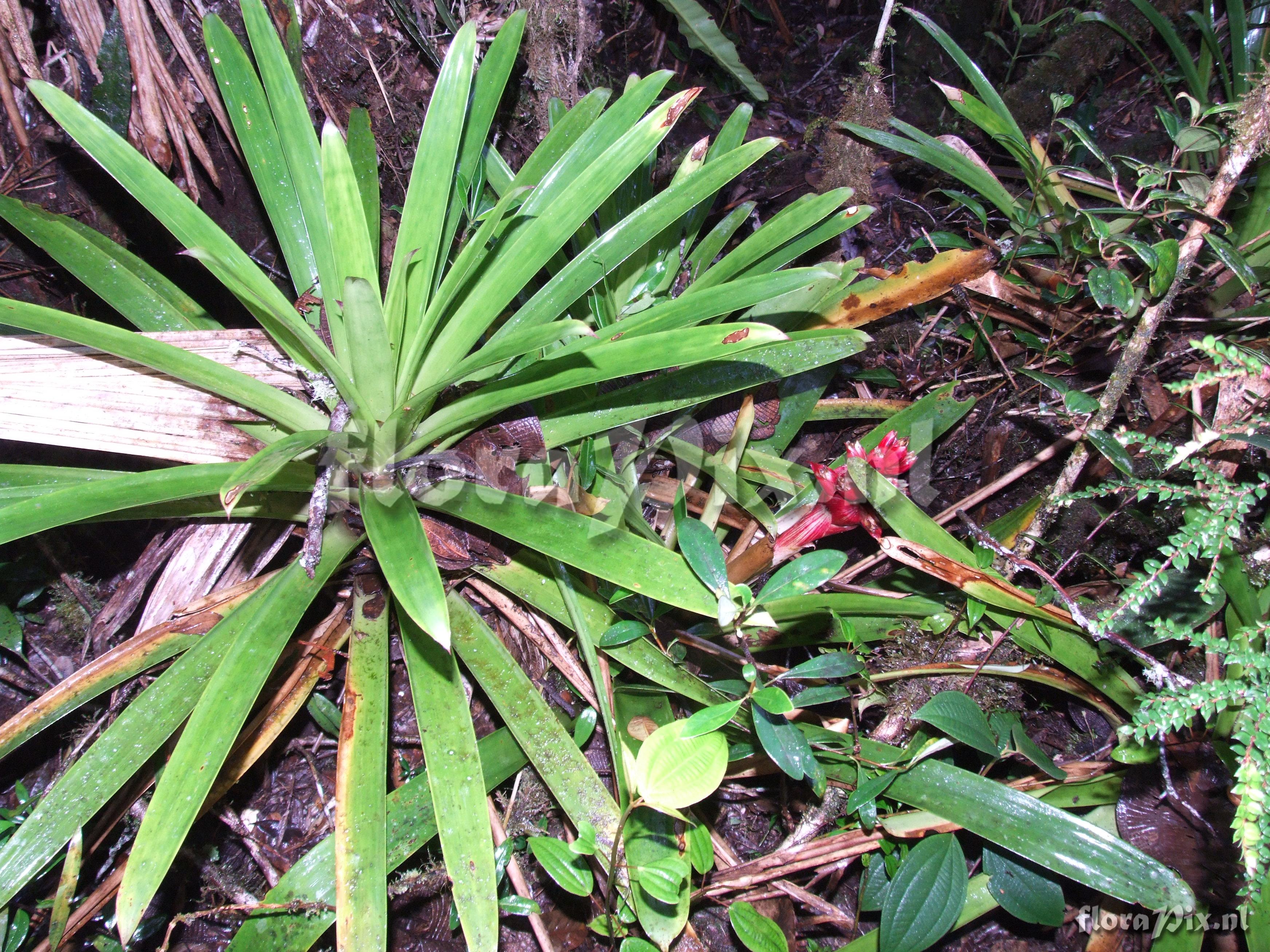 7823 - Bromeliads (Wild) - 2011-10-13(Dimension: 3518 x 2666 pixels - Counter: 13213) Mezobromelia cf. capituligera ![]() Locality: Ecuador - Prov. of Zamora-Chinchipe, area of Estación Cientifica San Francisco (S 03°58“, W 79°04“ ), road Loja-Zamora, ca. 35 km from Loja; moist montane forest Photographer: Florian Werner Note: Col.: Werner, F.A. 2058 (19-06-2006) - Det.: W. Till (U Vienna) 2011 "leaves fairly light green without markings; bracts bright pinkish red; flowering: petals white, slim tubular."