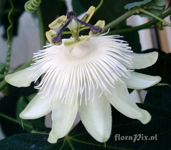 1664 - Passiflora (Garden) - 2006-09-17(Dimension: 597 x 550 pixels - Counter: 6335) Passiflora 'White Queen' ![]() Photographer: Ulrich Rothtauscher Note: Passiflora caerulea'CE'x Passiflora eichleriana I don't know it's the Original 'White Queen' because the bloom has coloured corona filiaments?
